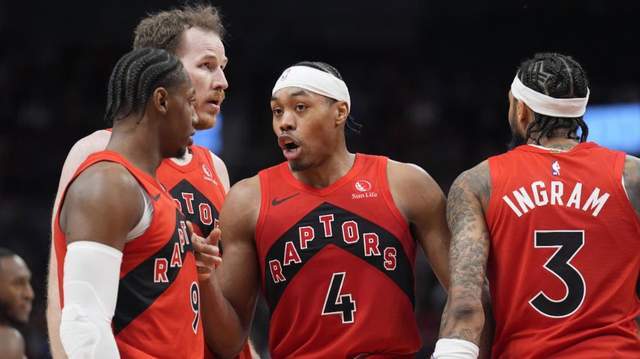 猛龙的锋线防守很强,巴恩斯2米03,臂展达到2.20米,可以防守1号位-5号位球员。英格拉姆2米06,长臂的优势让他在单防和协防上都很稳定。巴雷特2米01,身体极其强壮,能够顶人、能够撕咬,防守极其压迫性。在常规赛期间,米切尔遭遇到猛龙锋线群的防守也是极其难受,进攻效率下降明显。由于拥有很强的锋线防守,猛龙可以做到无限换防,挡拆后直接换,不收缩、不挤人、不丢人,导致对手找不到错位,只能强解。