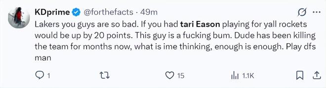 杜兰特球迷:伊森完全是在为湖人打球,这家伙简直就是一个废物,他已经连续几个月拖累我们了,我觉得该放弃他了,该换人上阵了,快点裁掉他吧。